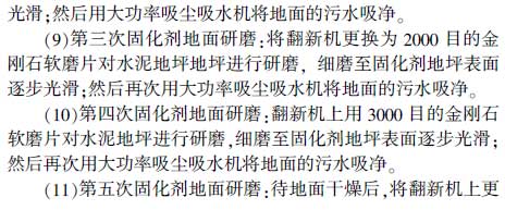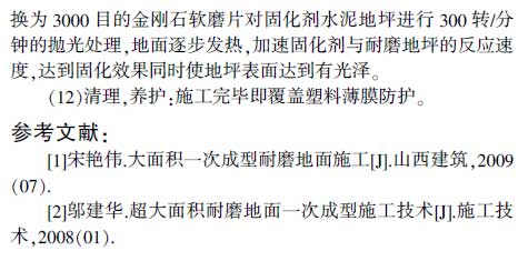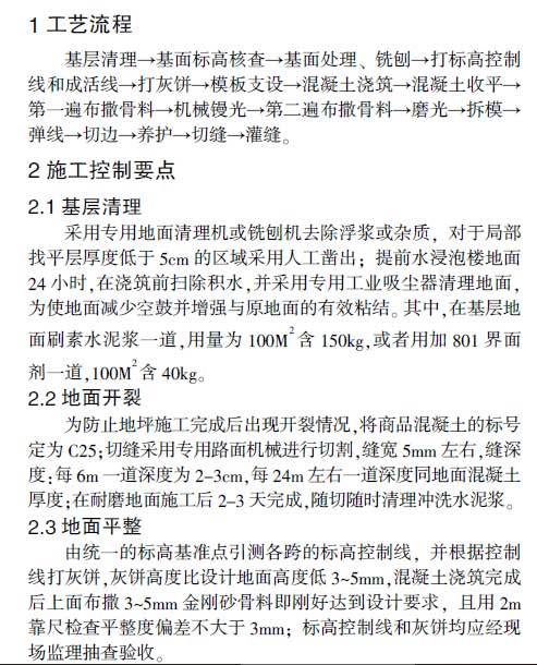 關(guān)鍵詞:工藝流程;施工控制要點(diǎn);耐磨地坪;密封固化劑